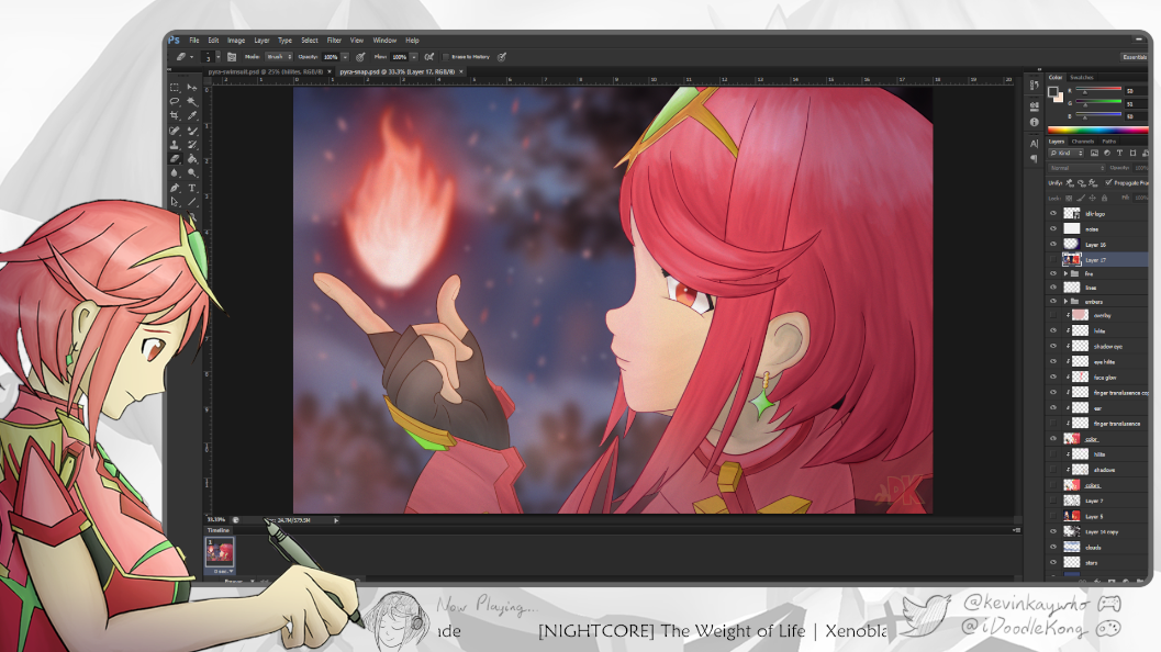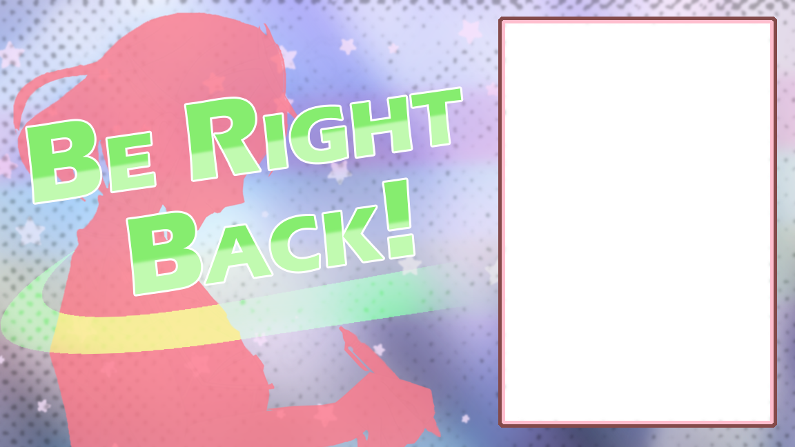 I designed my own stream layouts for Twitch, where I occasionally do art streams for friends to watch while I draw. Most of my art is based on the Xenoblade game series, and thus my designs are based on that as well. The blank canvas on the “Be Right Back!” screen allows a showcase of my previous art pieces that change over time. All of the illustrations are done by me as well!